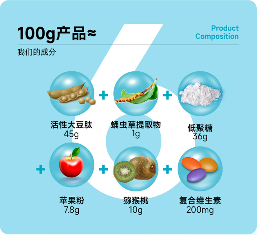 ——名貴成份當(dāng)?shù)溃ぐl(fā)人體活力。“活性大豆肽”依然是主打的產(chǎn)品特色,全力彰顯其“強吸收”的特性,同時添加“蛹蟲草提取物”、低聚糖等激活人體活力,提供一站式、復(fù)合式服務(wù),全力提升“成人新活力”。