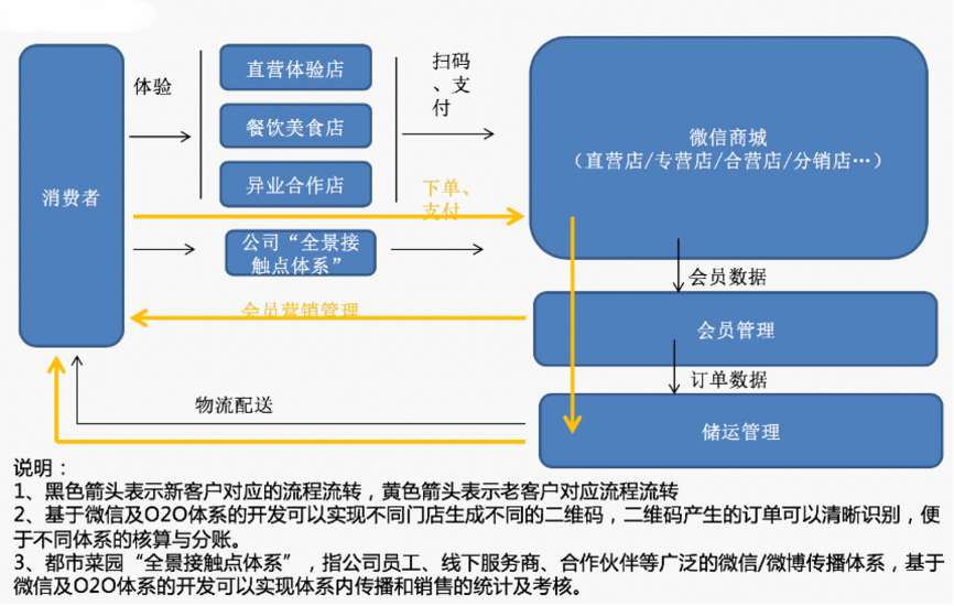第一步:聯通網絡與店面的接口,推進線下全景接觸,與各類線下生鮮采購、美食分享、圈層建設等各類消費場景結合,結合會員管理,放大都市菜園線上下單線下體驗、線上預約線下服務、平臺購買大廚下訂等多類全渠道消費場景,提升會員的生鮮購買、美食享受、家庭聚會等全域消費體驗。