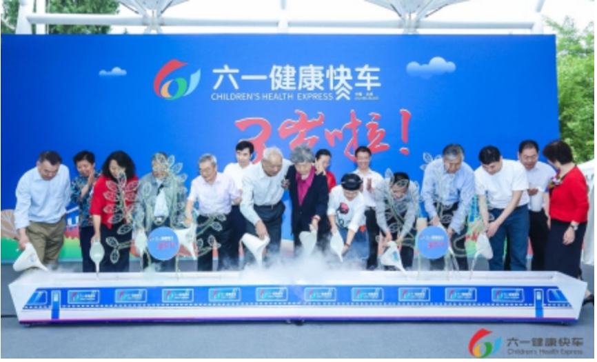 “六一健康快車”是由中國關心下一代工作委員會事業發展中心、中國優生科學協會、中華預防醫學會兒童保健分會、中華中醫藥學會兒科分會、中國醫師協會兒科醫師分會、中國醫師協會兒童健康專業委員會、中國中西醫結合學會兒科分會、中國中醫藥研究促進會綜合兒科分會、中國康復醫學會兒童康復專業委員會、中國營養學會婦幼營養分會、中國心理學會心理學標準與服務研究委員會、北京胡亞美兒童醫學研究院共同主辦并發起的大型兒童健康公益項目,于2016年5月28日在國務院新聞辦正式發車,同時開啟了"閃亮星星計劃"在全國的愛心旅程。
