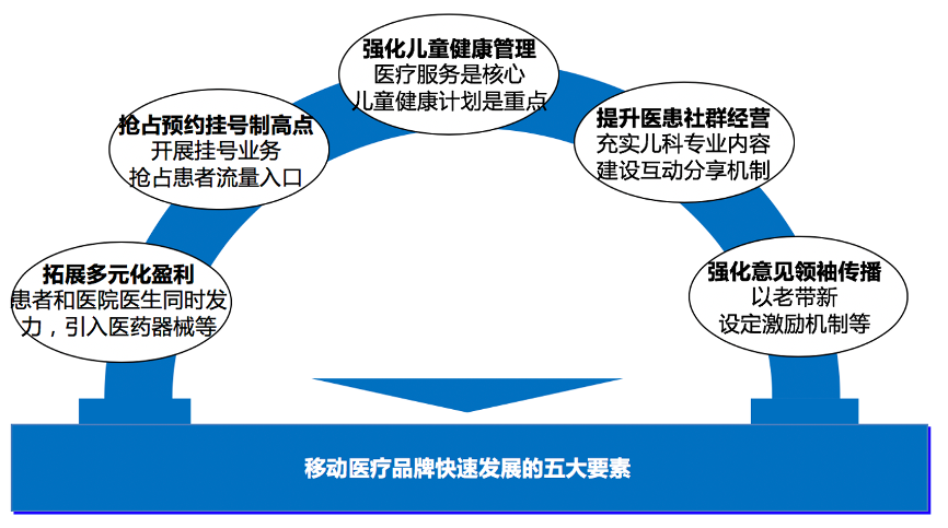 “兒科移動醫療三大態勢”之二:“泛兒科移動醫療”大整合。兒科醫療涉及到醫療、醫藥和器械等多領域的整合,涉及到患者自診、在線測評、到院預約、在院治療、出院護理等多個診療環節,部分重病患者還涉及到器械、康復等深度診療領域,領域跨度大、醫患交流多,兒科移動醫療行業具有戰略性發展機遇。