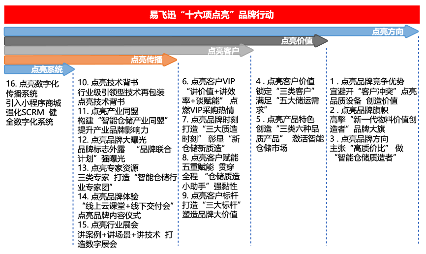 韜慧咨詢(xún),建議易飛迅以“十六項(xiàng)點(diǎn)亮”品牌行動(dòng),刷新品牌形象,強(qiáng)化數(shù)字品牌策劃傳播,讓工業(yè)品品牌更閃亮,讓工業(yè)品企業(yè)更有成長(zhǎng)性!